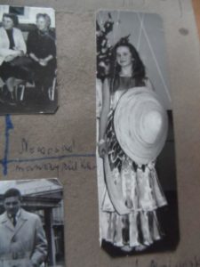 z naszego rodzinnego albumu… zdjęcia wykonał, wklejał i podpisywał mój Tato…ten podpis obok mnie nie dotyczy tego zdjęcia. W VII klasie na balu maskowym byłam przebrana za syrenę. Strój wymyśliła i samiuteńka wykonała Grażyna…najfajniejsze było zszywanie łusek – każda wycięta osobno, zszywana po lewej stronie, potem przewracana na właściwą- w tym brałam udział. Komu by się teraz chciało robić coś takiego ? Taka była i jest Grażyna…..